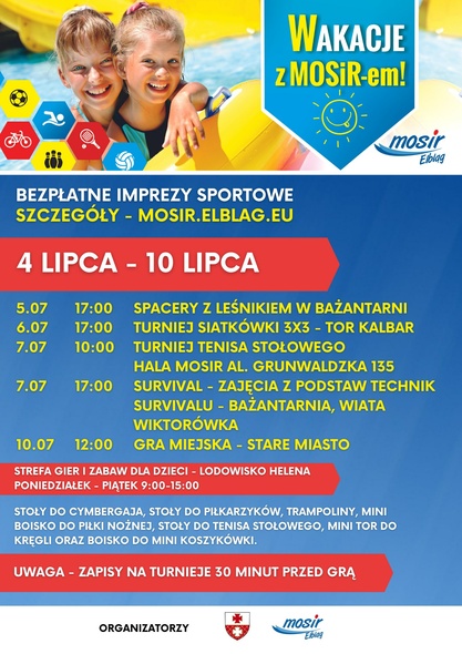 Bierzcie udział w wydarzeniach i spędzajcie Wakacje z MOSiR-em! Udział we wszystkich wakacyjnych imprezach jest bezpłatny.