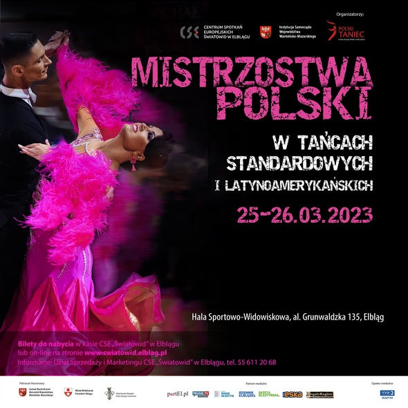 Klasa, szyk, wdzięk i elegancja. Przed nami wyjątkowe taneczne show, czyli Mistrzostwa Polski w tańcach standardowych i latynoamerykańskich. Już jutro przed elbląską publicznością w Hali Sportowo-Widowiskowej przy al. Grunwaldzkiej zaprezentują się pary z całego kraju. Transmisję z mistrzostw będzie można oglądać na żywo na stronie internetowej Światowida oraz w serwisie YouTube na kanale CSE Światowid w Elblągu.