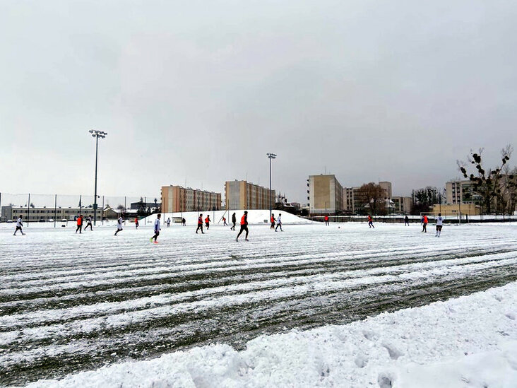 Zimowa aura nie przeszkadza piłkarzom elbląskich drużyn przygotowywać się do rozpoczęcia ligi. Elblążanie w opadach śniegu rozgrywają mecze sparingowe.