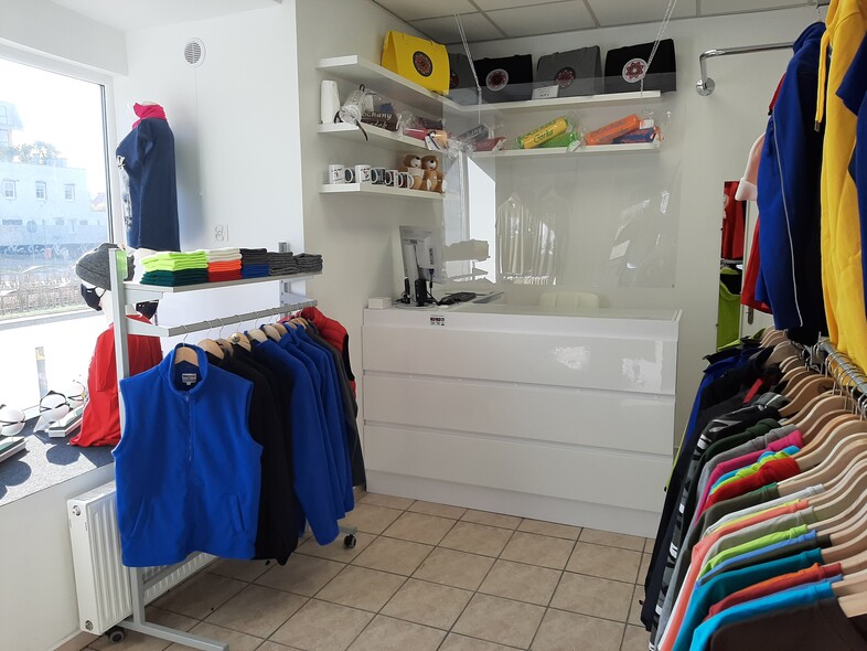 Co od razu rzuca się w oczy? Duży szyld elbląskiej firmy Barwy Haft i Nadruk, która właśnie tam ulokowała swój Salonik Firmowy. Fanów siedziby firmy przy ulicy Wiejskiej uspokajamy: tam w dalszym ciągu mieści się produkcja, wzorcownia oraz obsługa klienta Barw Haft i Nadruk.