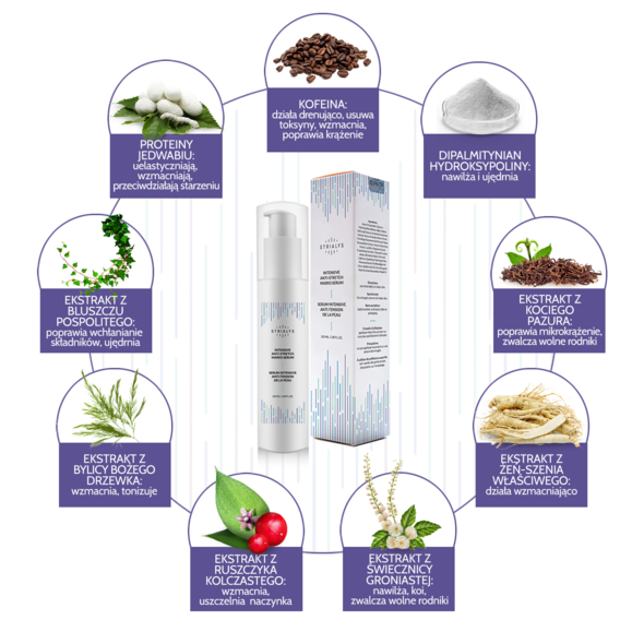 Krem, który faktycznie zredukuje rozstępy, będzie wspomagać regenerację skóry, nadawać jej elastyczność i dobrze nawilżać. Musi więc zawierać składniki: regenerujące, nawilżające, ujędrniające, uelastyczniające, wzmacniające naczynia krwionośne oraz poprawiające krążenie. Wszystko to zapewnia krem na rozstępy Strialys, którego składniki aktywne są pochodzenia naturalnego.