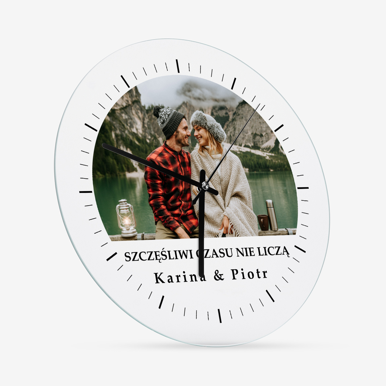 To nie tylko elegancki element dekoracyjny, ale przede wszystkim symbol wspólnie spędzonego czasu. Grawerowany napis „Szczęśliwi czasu nie liczą” przypomina, że prawdziwa miłość nie zna pojęcia przemijania. Ten zegar idealnie sprawdzi się jako prezent na rocznicę ślubu – zarówno dla rodziców, przyjaciół, jak i dla drugiej połówki. Dzięki personalizacji można dodać imiona oraz datę, co nadaje upominkowi jeszcze większej wartości emocjonalnej.