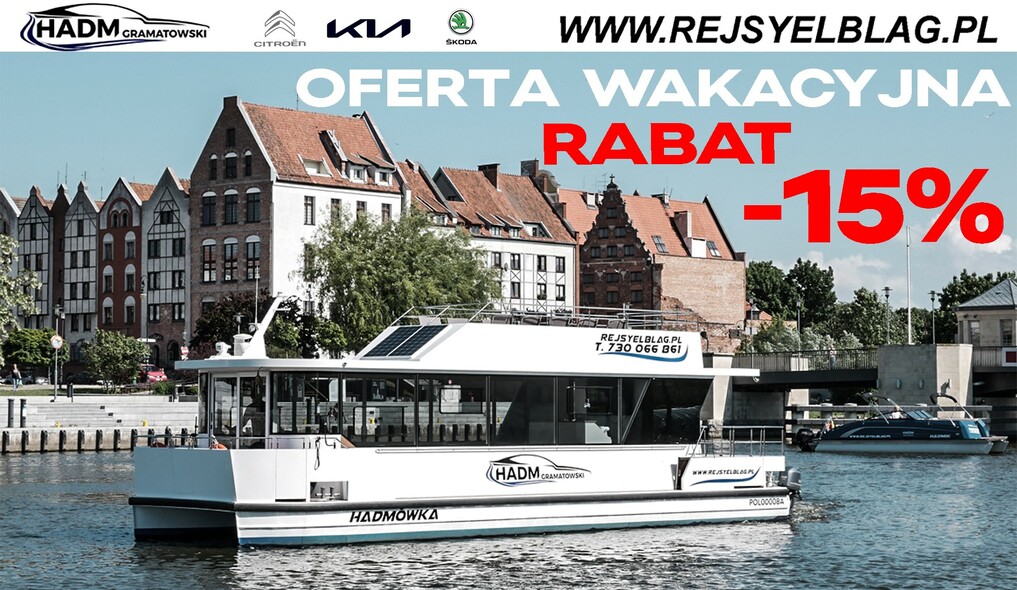 Jeśli w dniach 1 - 7 lipca zrobisz rezerwację na czarter, to otrzymasz 15 procent RABATU na zorganizowanie swojego wymarzonego rejsu. Macie Państwo możliwość czarteru katamaranu HADMIK oraz katamaranu HADMÓWKA wraz ze sternikiem. Możliwość zorganizowania spotkań biznesowych, urodzin, zaręczyn czy upamiętnienia przeżyć wyjątkową sesją zdjęciową na ekskluzywnym katamaranie. Katamaran HADMówka zabierze 12 osób, posiada dwa pokłady. Na górnym tarasie możecie korzystać z pięknego słońca i podziwiać z góry otaczający nas krajobraz, zaś na pokładzie dolnym znajduje się zabudowa barowa, TV, nagłośnienie oraz oświetlenie LED.