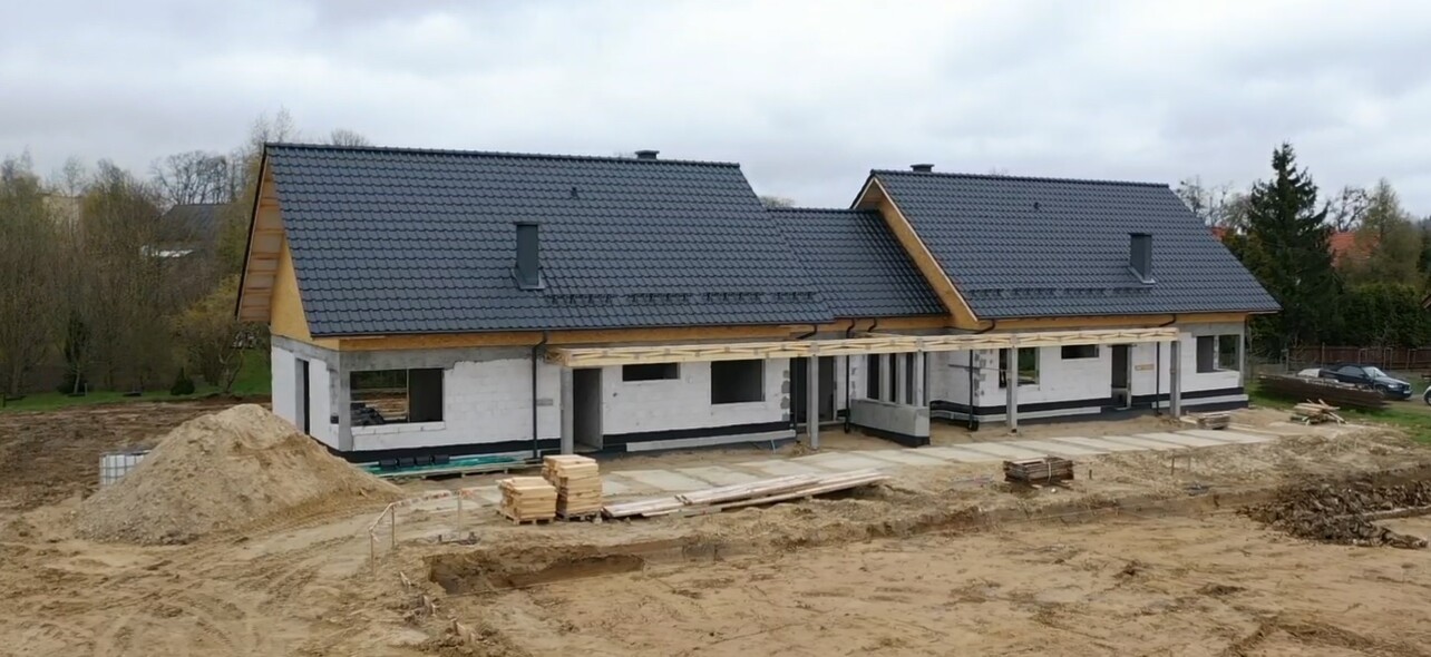 Na tym etapie prac budynek pokryty jest już dachówką, aranżacje ścian wewnętrznych nadal można zmienić z pomocą projektanta.