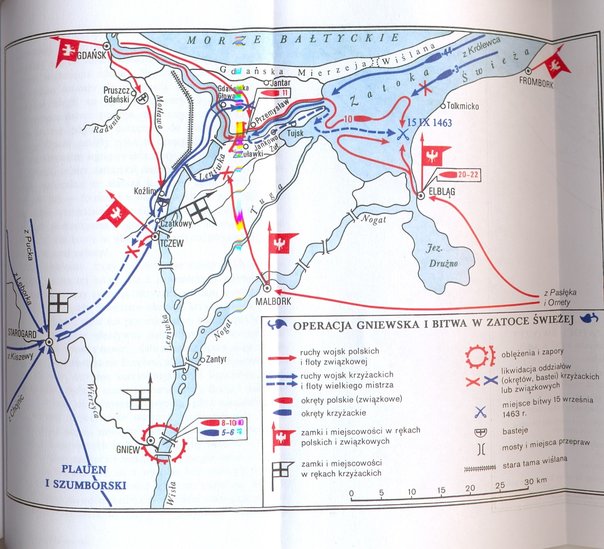 Do bitwy morskiej na Zalewie Wiślanym doszło 15 września 1463 roku, w dziesiątym roku wojny trzynastoletniej. Krzyżacka flota została zaatakowana i pokonana przez flotę miast Związku Pruskiego – Gdańska i Elbląga – walczącego po stronie Królestwa Polskiego. Wiadomo, że w bitwie uczestniczyli także zaciężni z Pasłęka. 556 lat po tym na wody Zalewu znów wypłynęli między innymi bojowi pasłęczanie. Przedstawiciele stowarzyszenia Kuźnia Pruska, obok rekonstruktorów i pasjonatów historii z innych miast, wzięli udział w inscenizacji, która odbyła się w Kątach Rybackich.