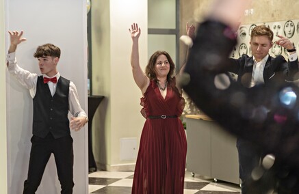 Maturzystów z ZPSM jest obecnie jedenaścioro, ale oczywiście na ich studniówce pojawiło się wiele innych osób, grono pedagogiczne, partnerki i partnerzy, koledzy i koleżanki ze szkoły... Zabawa odbyła się w hotelu Focus. Prowadzący zabawę podkreślali, że studniówka to ważny moment podróży przez szkolne lata.