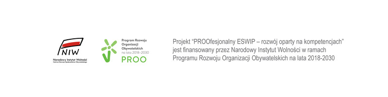 Projekt "PROOfesjonalny ESWIP - rozwój oparty na kompetencjach" jest finansowany ze środków NIW-CRSO w ramach Programu Rozwoju Organizacji Obywatelskich na lata 2018-2030