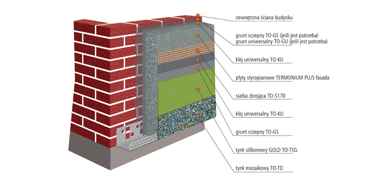 W przypadku ścian zewnętrznych najlepszy sposobem ograniczenia strat jest zastosowanie kompletnego systemu ociepleń, który pochodzi od jednego producenta i w połączeniu z poprawnym wykonaniem zapewnia skuteczną i trwałą ochronę cieplną ścian budynków przed wychłodzeniem. Kompletny system ociepleń to również gwarancja kompatybilności poszczególnych jego składników, co przekłada się na bezpieczeństwo użytkowania oraz trwałość i estetykę elewacji. Produkty Termo Organiki, jak np. płyty styropianowe i kompletny system ociepleń posiadają Rekomendacje Techniczne i Jakości ITB. Co ważne podkreślenia Termo Organika, jako lider rynku, od lat wyznacza standardy. Jakość styropianu Termo Organiki potwierdzona została m.in. szesnastoma kontrolami Głównego Urzędu Nadzoru Budowlanego (GUNB) oraz Wojewódzkich Inspektoratów Nadzoru Budowlanego (WINB).