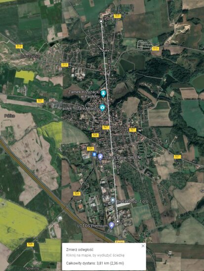 • @Pasłeczanin57943 - Odpal sobie google maps, tam są aktualne mapy. Tak plus/minus pół roku i wybierz takie narzędzie jak "zmierz odległość".