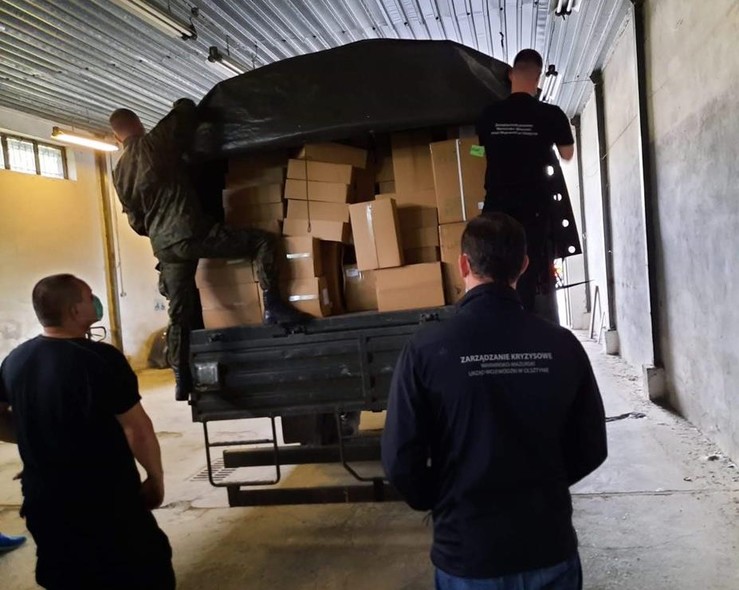 Transport z magazynów Warmińsko-Mazurskiego Urzędu Wojewódzkiego dostarczyli strażacy z Komend Powiatowych Państwowej Straży Pożarnej oraz druhowie z Ochotniczych Straży Pożarnych. Płyny trafiły do wszystkich powiatów w województwie. W sumie 31 055 litrów, czyli około 45 litrów płynu na placówkę.