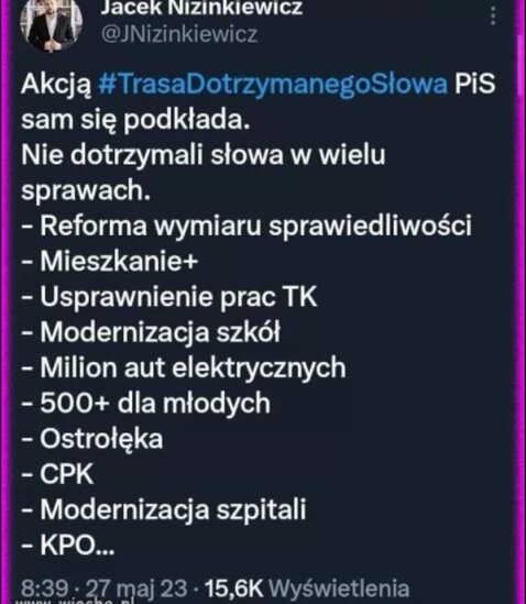 • Widziałem w internetach jak pisowskie... przypisują sobie sukces budowy tunelu pod Świną. Może wkrótce pisowskie otwarcie zamku w Malborku, piramidy w Egipcie albo bazyliki św Piotra.