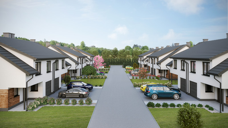 - prywatne osiedle 10 domów w zabudowie bliźniaczej ( 20 segmentów mieszkalnych )